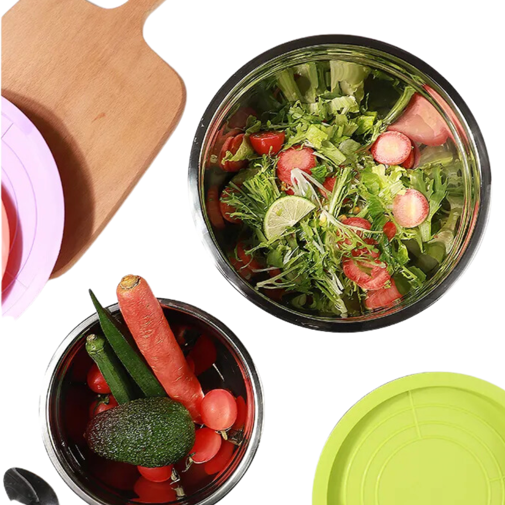 ¡Mantén frescos tus alimentos, sin ninguna retención y olores! Es un excelente aliado en tu cocina para preparar y también cuidar de tus alimentos; satisfarán tus diferentes necesidades, como preparar alimentos, almacenar comidas o mezclar ensaladas, batir huevos o servir sopa, los cuencos son aptos para horno y tambien para batidora.