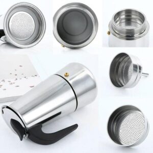 ¡Envuélvete en el aroma de café recién preparado! Esta cafetera espresso es adecuada para cualquier cocina, como gas, estufa de inducción, estufa de cerámica, estufa eléctrica y estufa de campamento de propano, puedes preparar hasta 9 tazas de expreso gourmet en solo cinco minutos y su rico sabor y aroma te impresionará al instante. Debido a su resistencia a la corrosión, se puede limpiar con un lavavajillas.