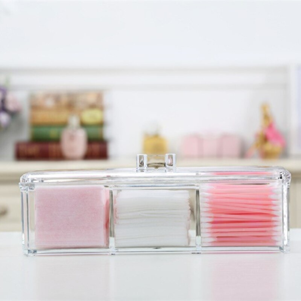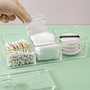 ¡Que tus momentos al alistarte sean más rápidos! Ten a la mano hisopos, algodón, esponjas faciales o guarda lo que necesites de tu uso diario, son elegantes puede ponerla en el baño, armario, velador, entre otro lugares, es trasparente por lo que ubicaras con facilidad cada uno de tus artículos.