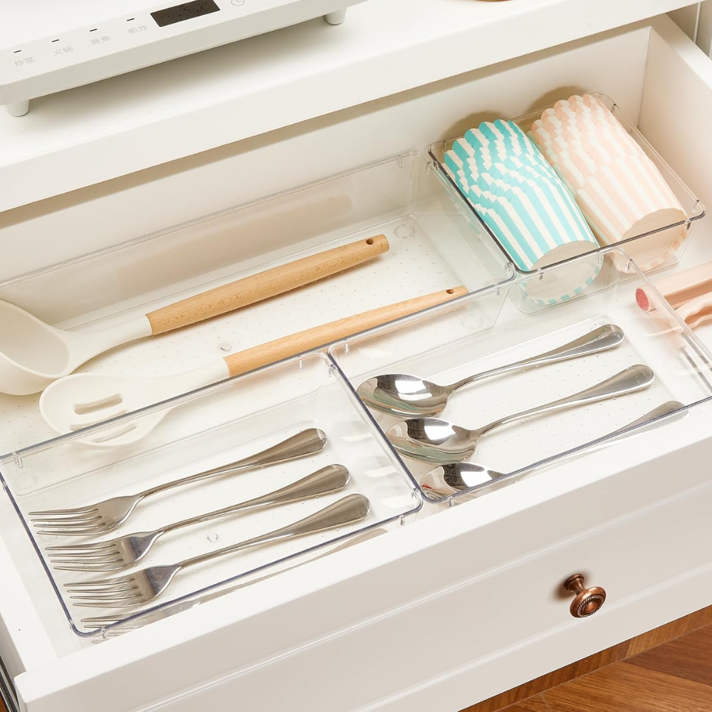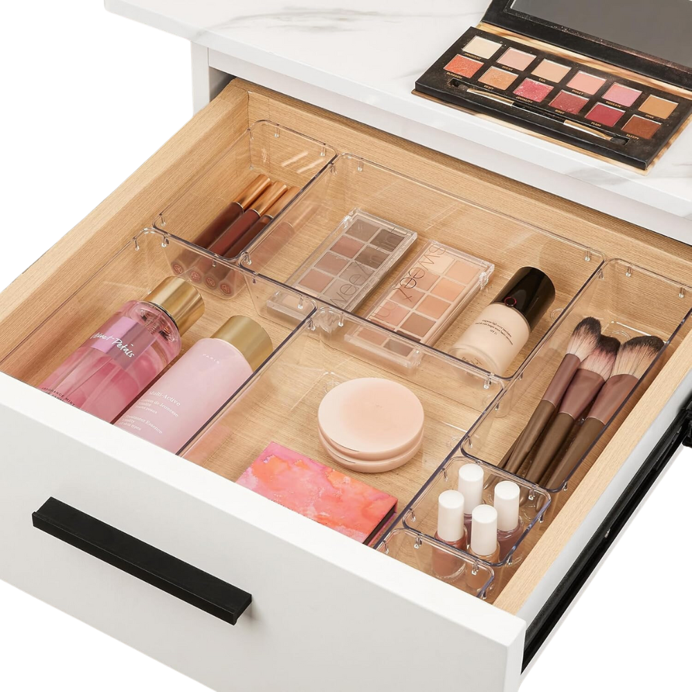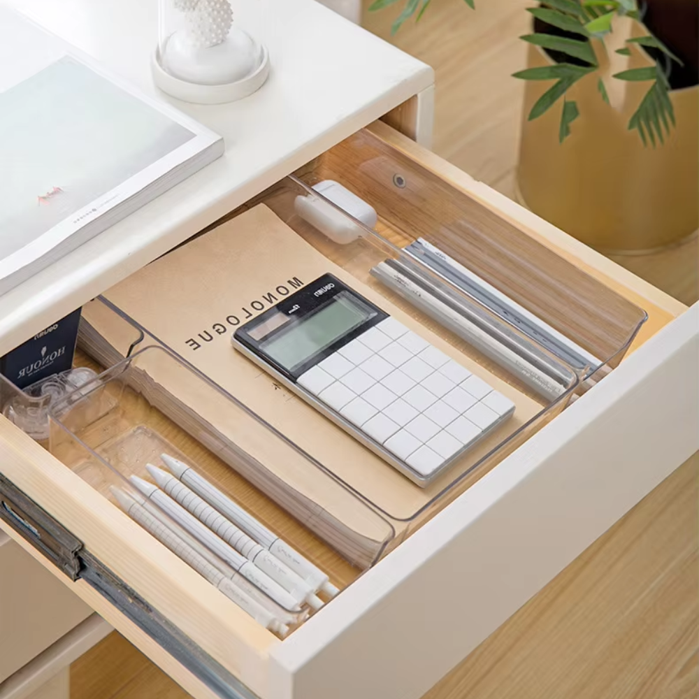 ¡Convierte el caos en orden! Nuestros organizadores de policarbonato no solo te ayudan a mantener el orden, sino que también aportan un toque moderno y limpio a tus cajones. Cada espacio merece lucir impecable; con cada cosa en su lugar, haces tu día más sencillo y libre de estrés.
