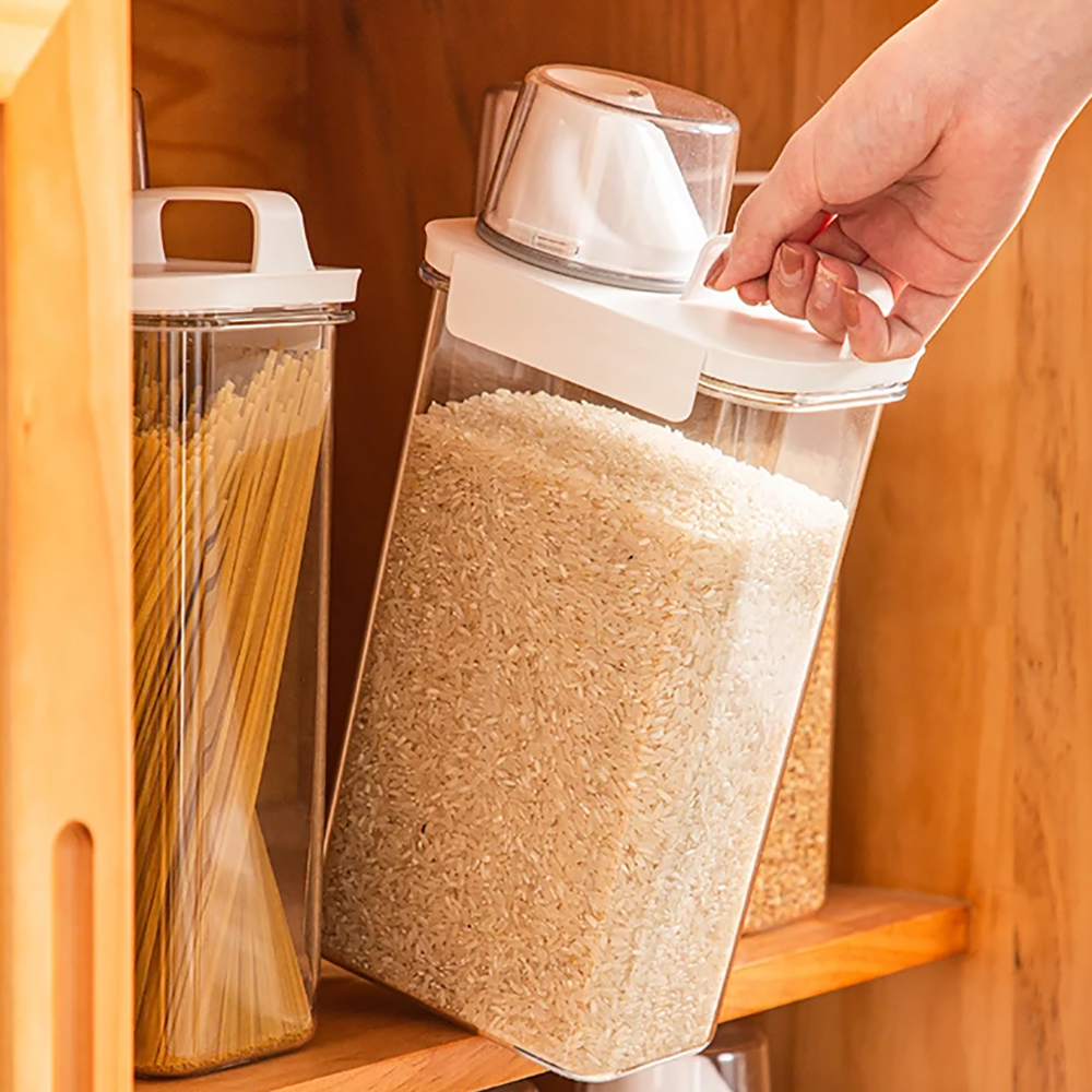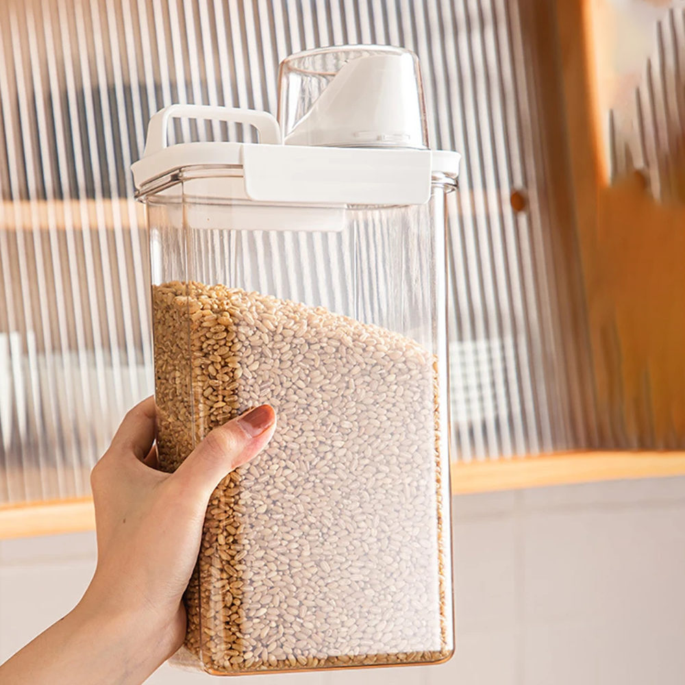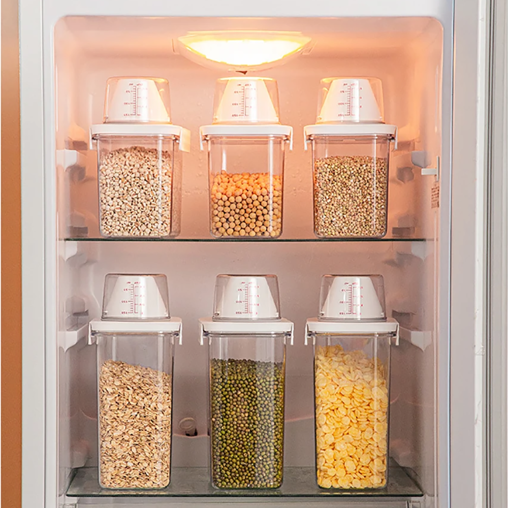¡Mantén tus alimentos libres de humedad! Con estos contenedores, podrás disfrutar de alimentos frescos todos los días. Está diseñado con una taza medidora y un pico, para vertir solo lo que sea necesario.