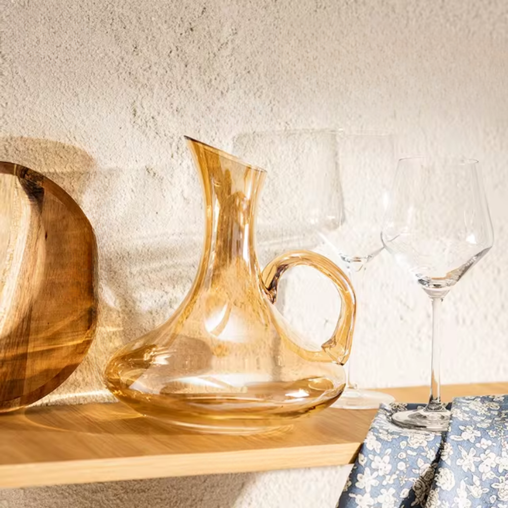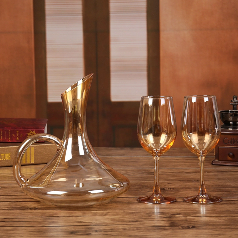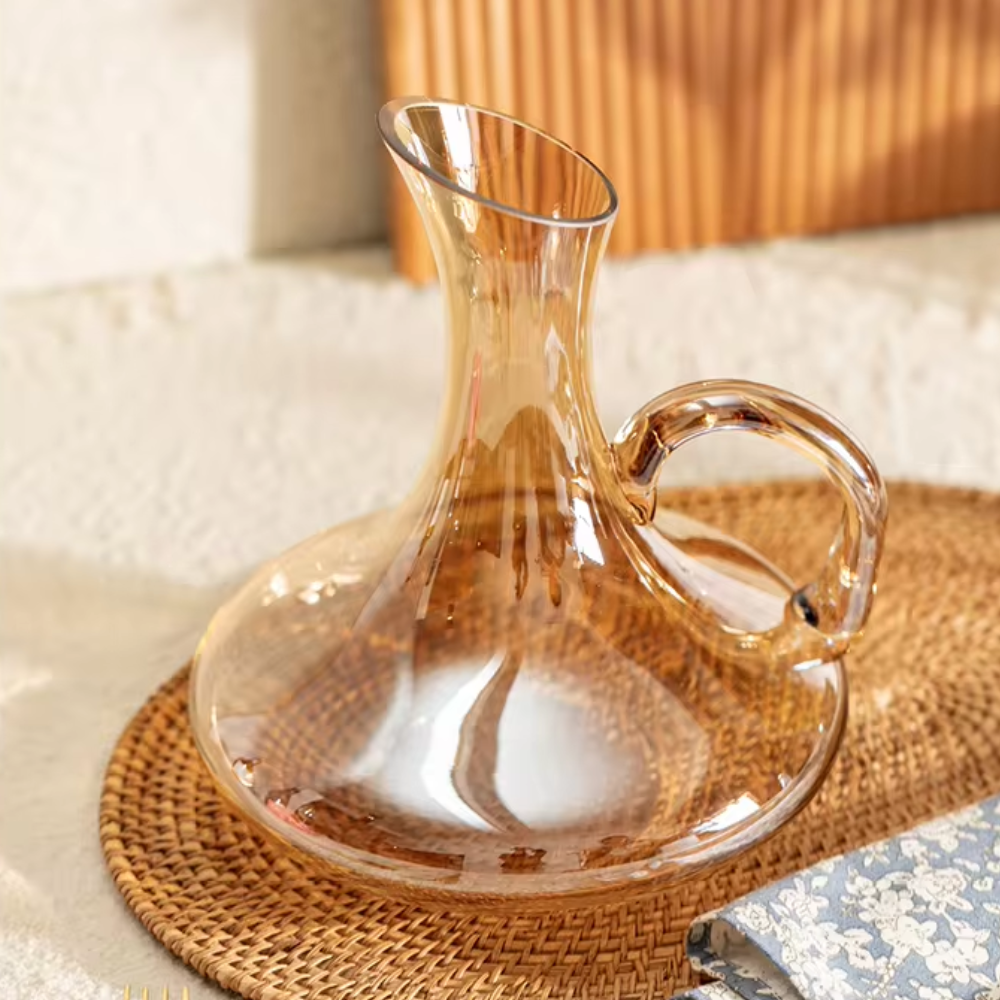 Decantador Jarra de Vidrio para Vino con Asa Dorada