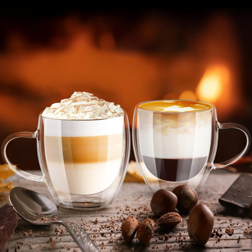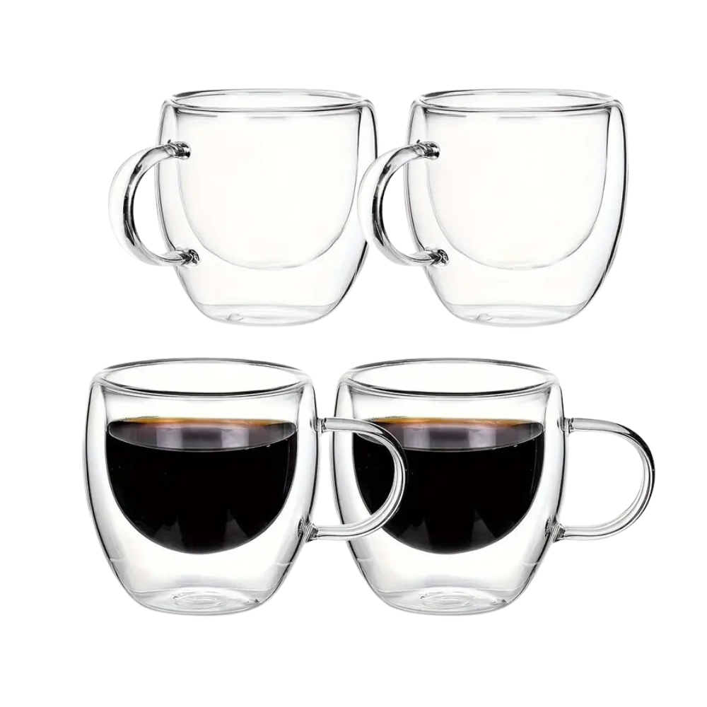 Pack de 4 Tazas Doble Pared de Vidrio 250 ml: