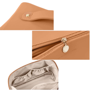 ◊ Hecha de tela de piel sintética de alta calidad. La superficie impermeable especial de cuero evita que los productos de maquillaje internos se mojen mientras que son más duraderos.