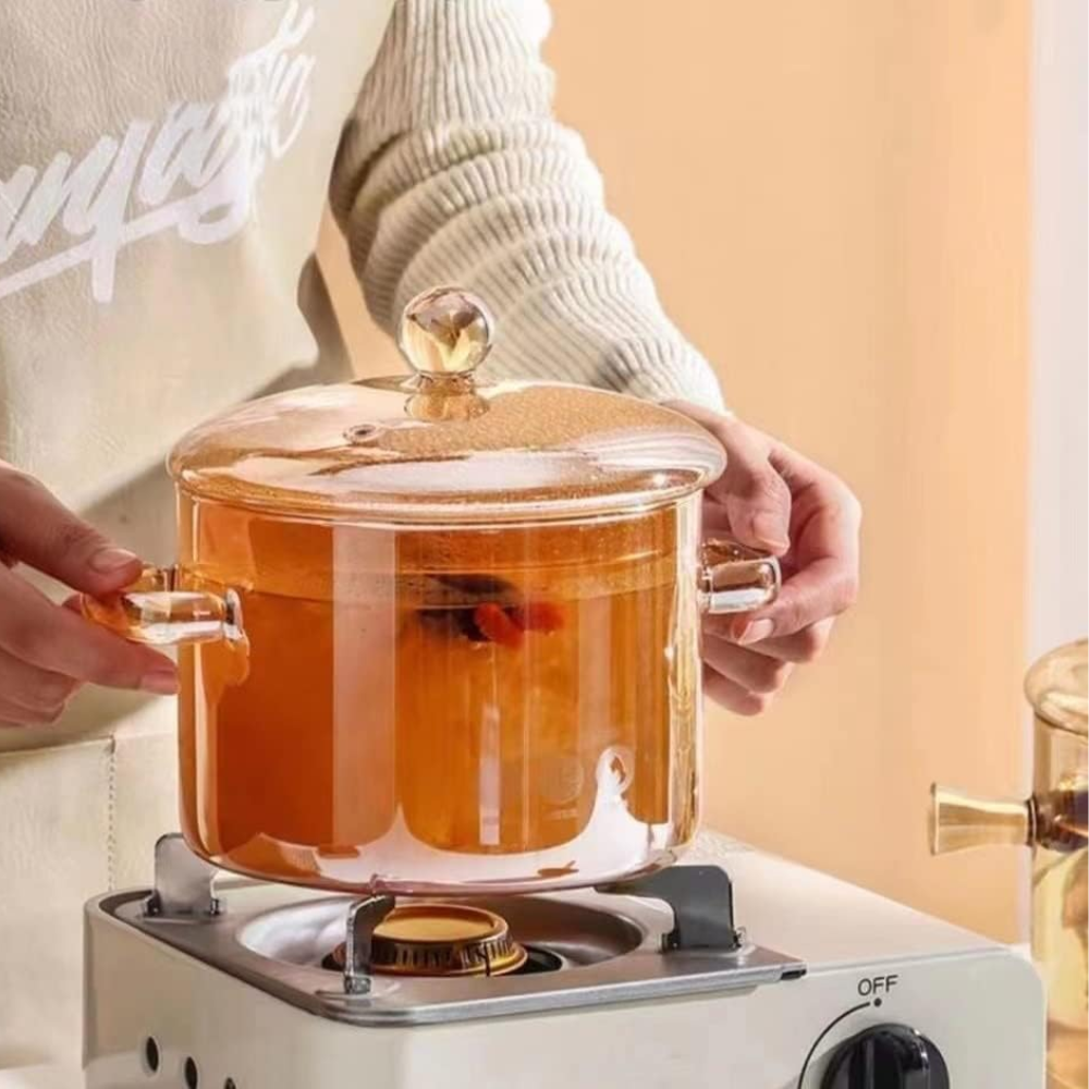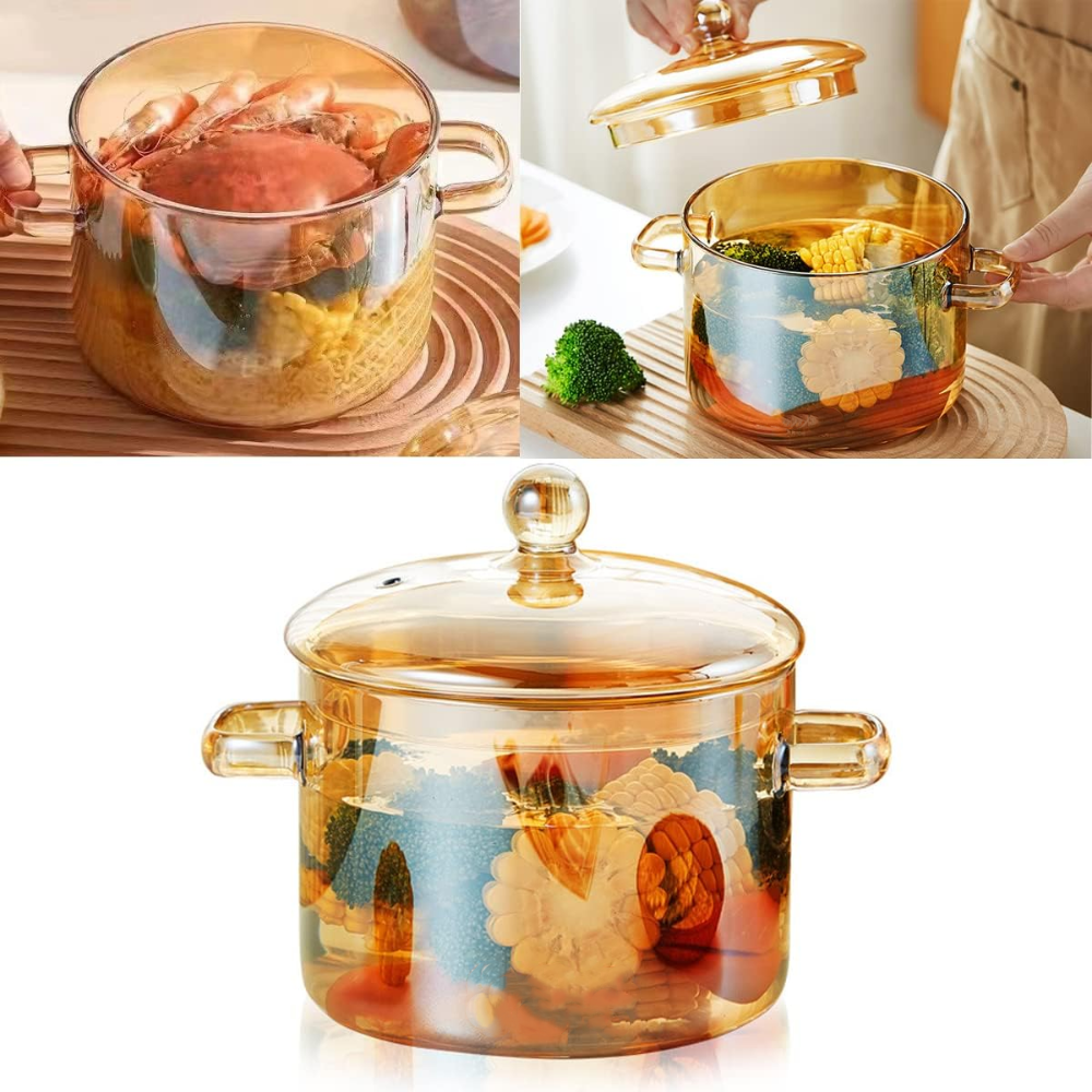 Olla de Vidrio Borosilicato con Tapa Resistente al Calor