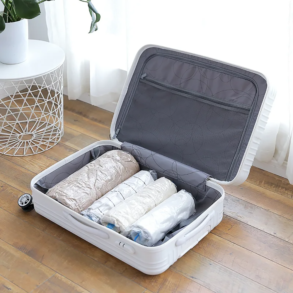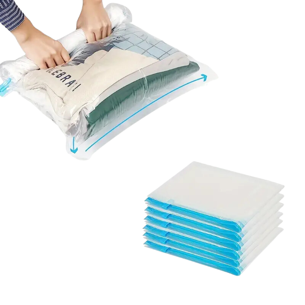¡Viaja ligero y organizado! Con nuestras bolsas al vacío tipo rollo, optimizar el espacio es sencillo. Ya sea para viajar o para organizar tu hogar, estas bolsas son indispensables. Podrás empacar más ropa sin ocupar tanto espacio. Ideales para viajes largos y para mantener tu armario siempre ordenado.