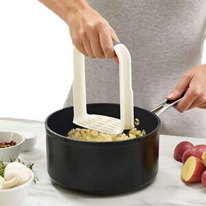 ¡Evita grumos y prepara unos cremosos purés! Sea de vegetales o frutas o papillas para niños este prensador te ayudará a presionar todo lo que requieras dejando la consistencia según tu gusto. Su mango tiene una cobertura antideslizante lo cual evitará cualquier accidente. Apto para ollas antiadherentes
