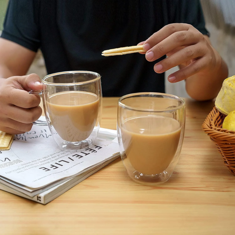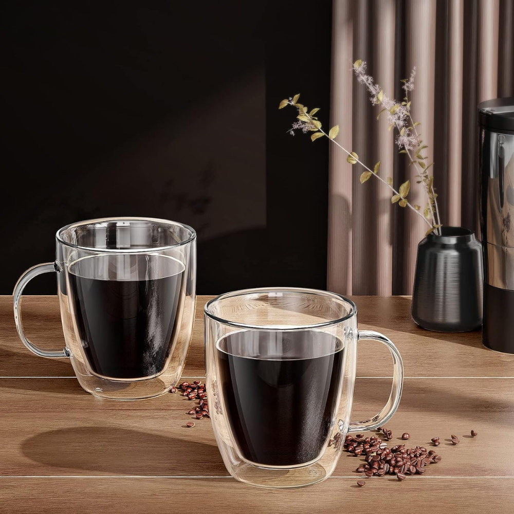 ¡Disfruta de tus bebidas favoritas como nunca antes! Con su doble capa de vidrio, estos vasos mantienen tus bebidas calientes por más tiempo, sin quemarte las manos. Además, su diseño elegante añade un toque de sofisticación a cualquier ocasión. Ya sea que disfrutes de un café caliente por la mañana o de un refrescante cóctel por la noche, nuestros vasos te brindarán una experiencia de beber única y placentera.