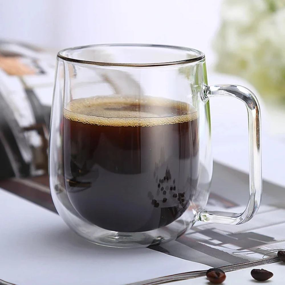¡Diseño y funcionalidad en una sola taza! Disfruta cada sorbo con el equilibrio perfecto entre estilo y comodidad. Su estructura de doble pared mantiene la temperatura ideal, mientras su base ancha le da firmeza y equilibrio.
