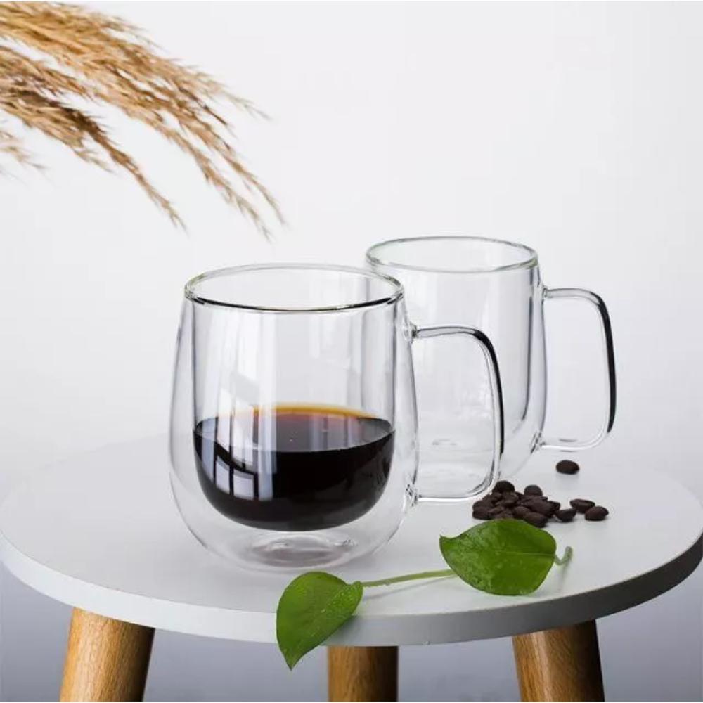 Set de 2 Tazas Doble Pared de Vidrio Base Ancha 450 ml