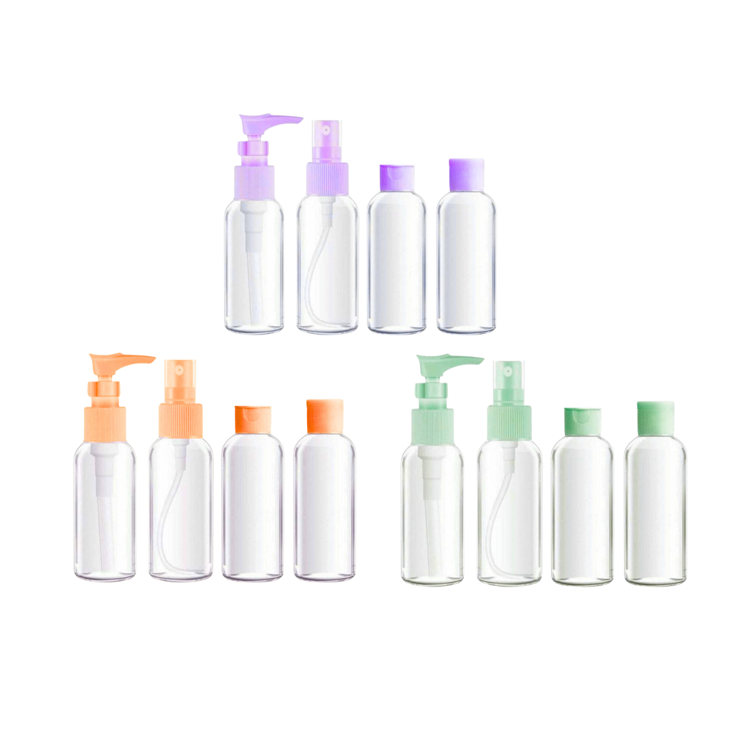 ¡Tu Kit de Aseo Perfecto para Viajar! Nuestros frascos dispensadores y pulverizadores son la solución ideal para transportar tus productos de aseo de forma segura y conveniente. Compactos y resistentes, son perfectos para viajes y paseos. ¡Lleva tu rutina contigo a donde vayas!