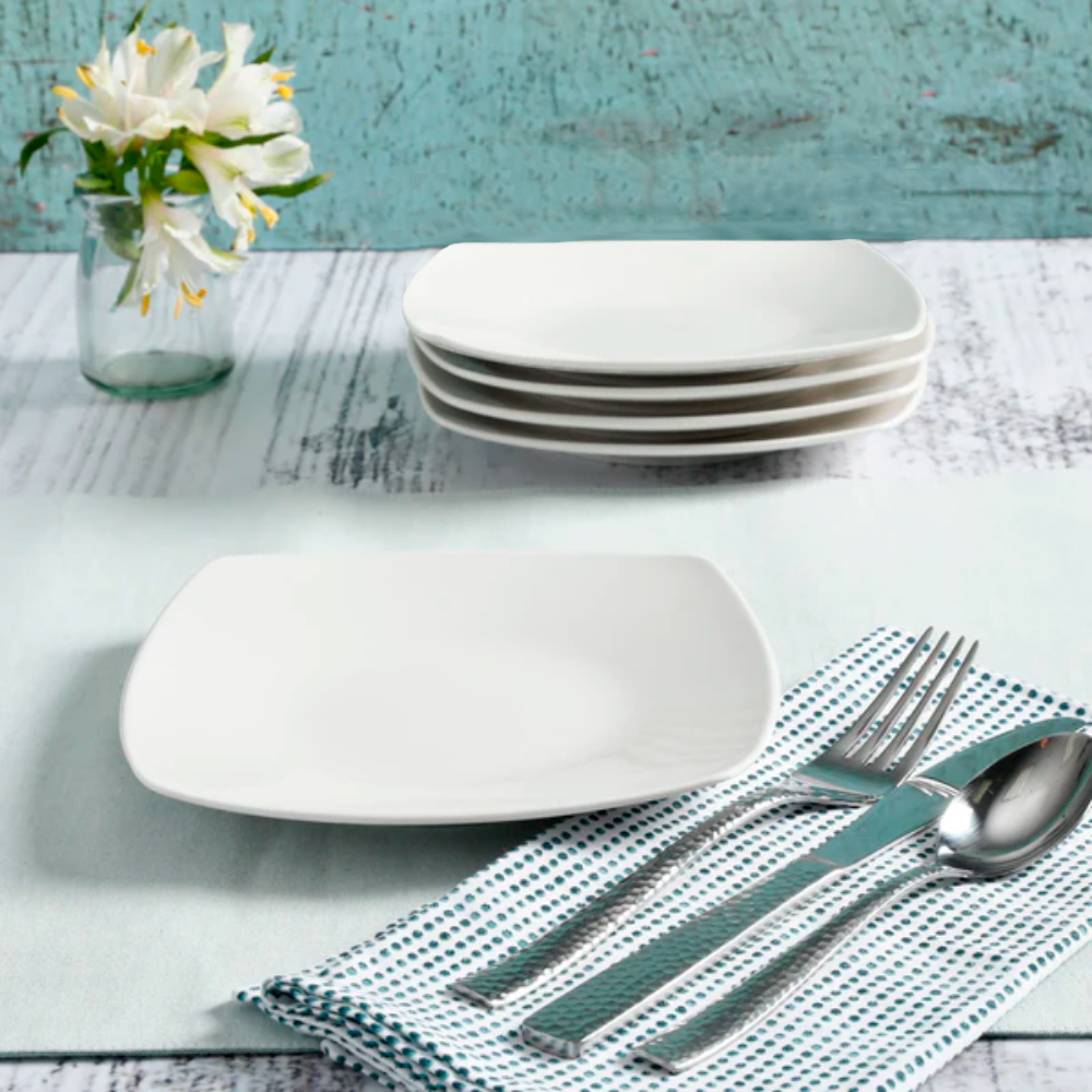 Set de 4 Platos Cerámica Cuadrados 23 cm
