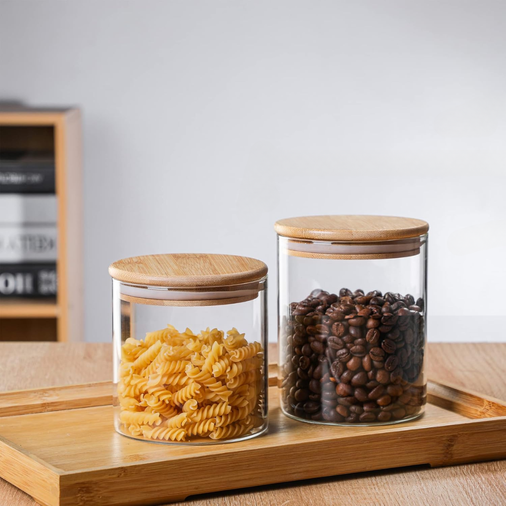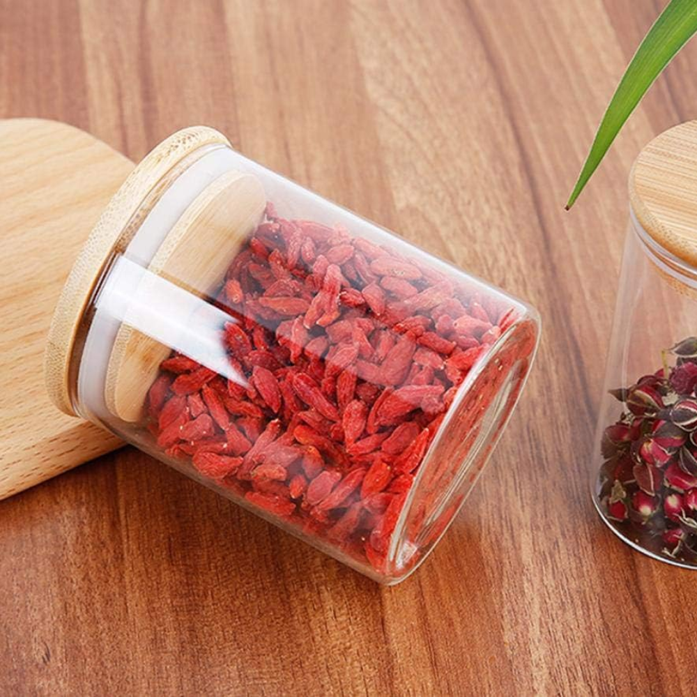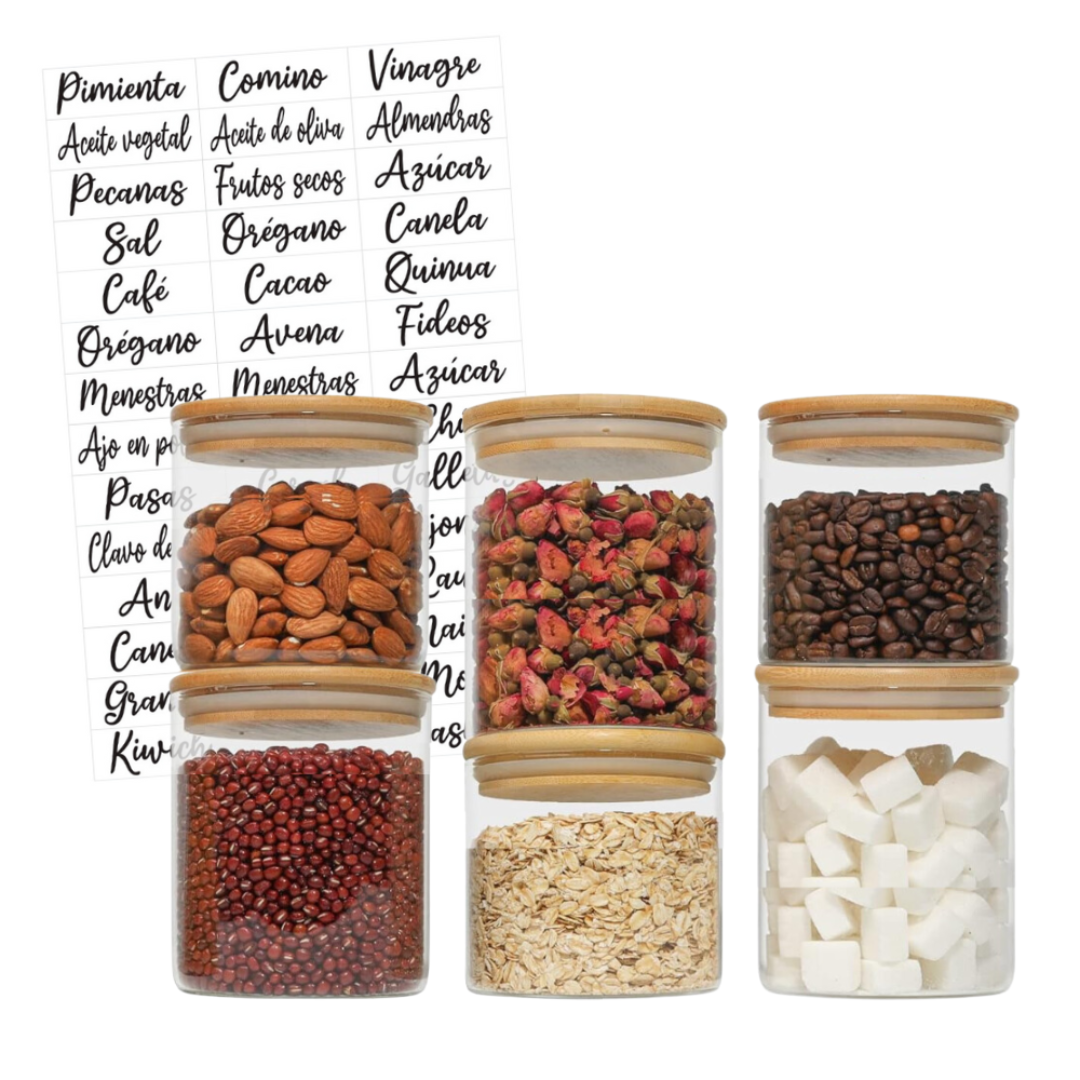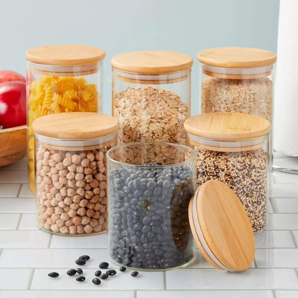 Set de 6 Frascos de Vidrio Borosilicato con Tapa de Bambú