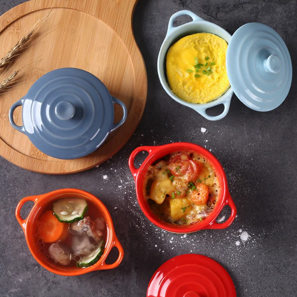 Set de 6 Mini Cacerola Redonda Cerámica con Tapa