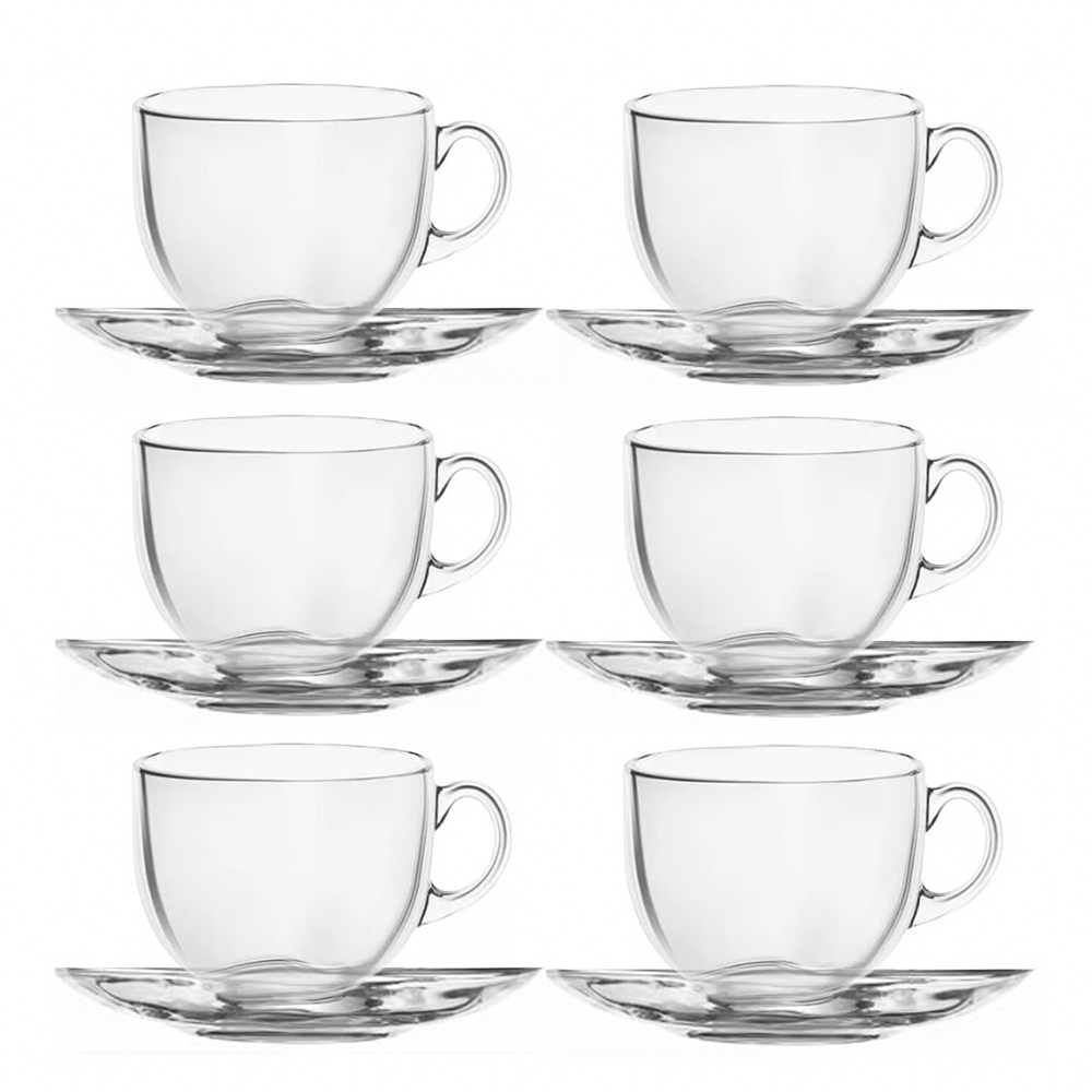 Set de 6 Tazas más Plato de Vidrio Transparente para Café