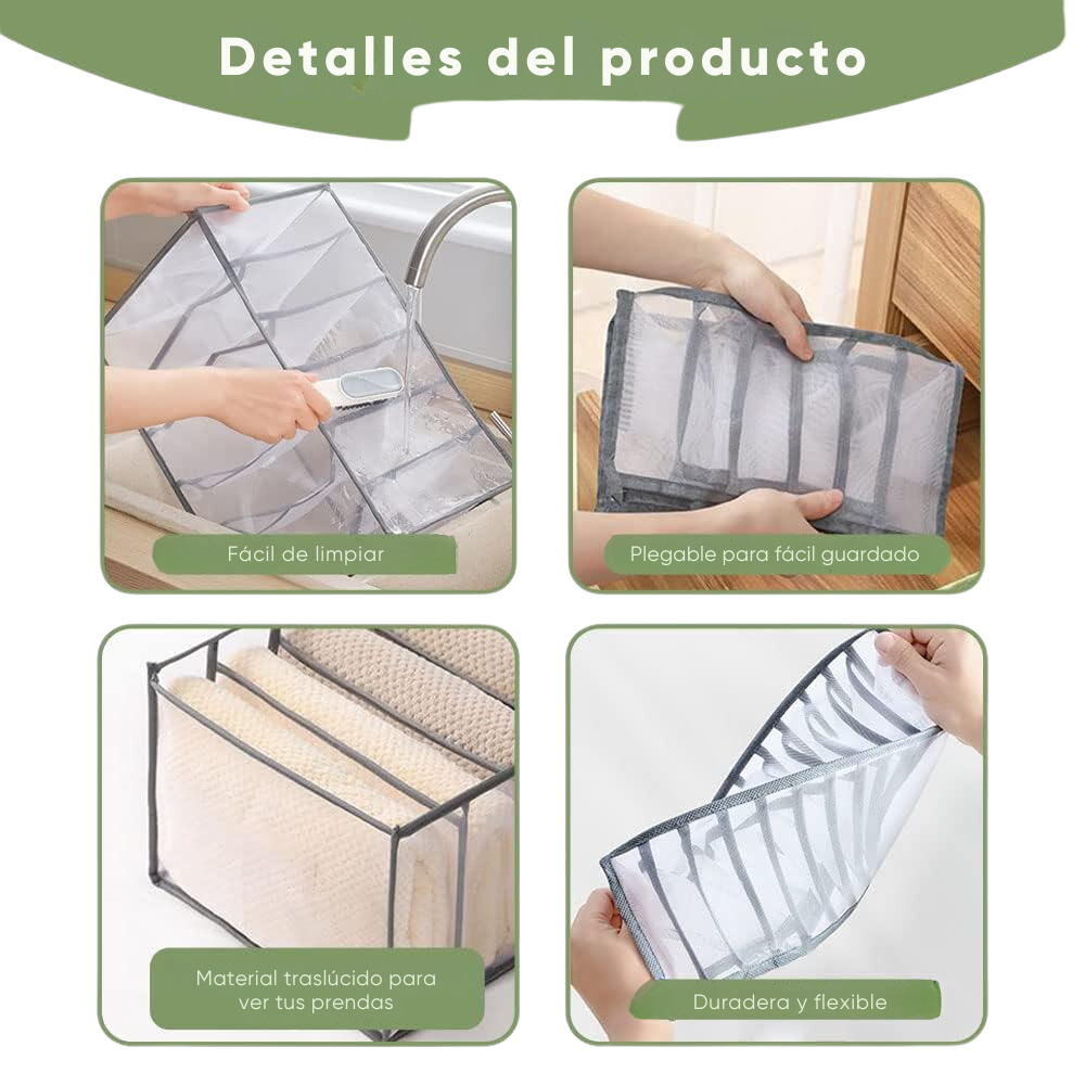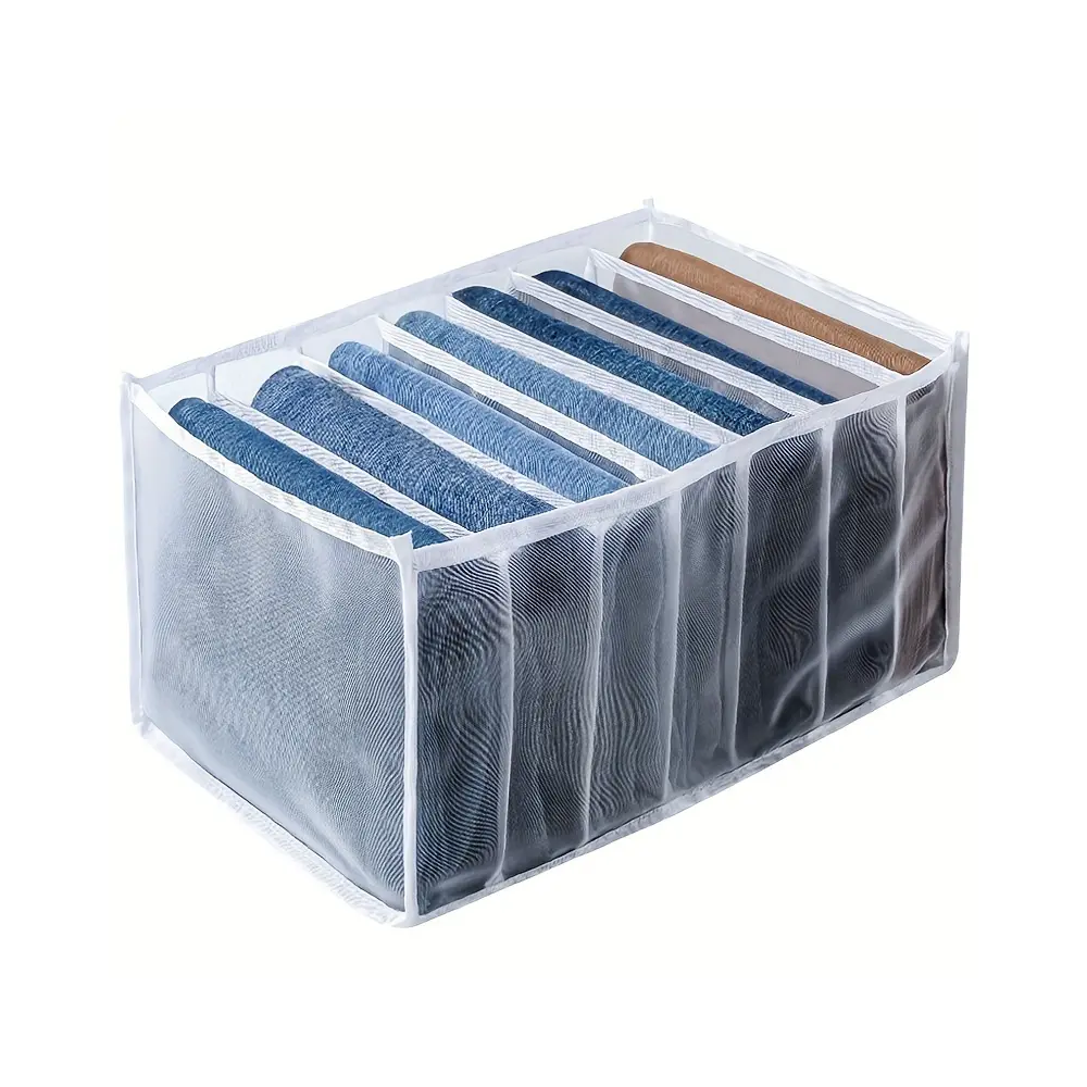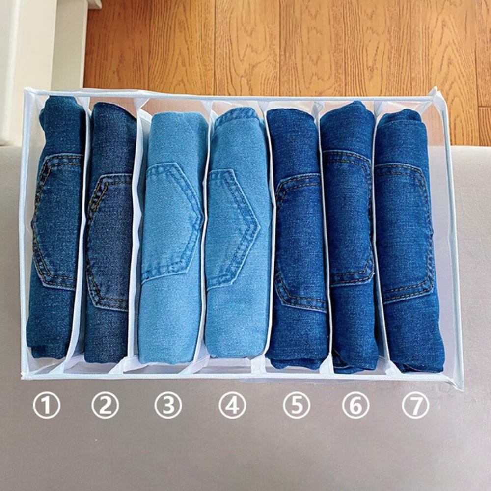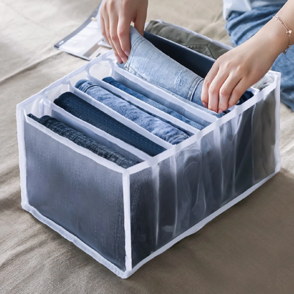 ◊ Al doblar tus pantalones de manera adecuada en el organizador, evitas que se arruguen o se dañen. Esto es especialmente útil para pantalones delicados o de tela sensible.